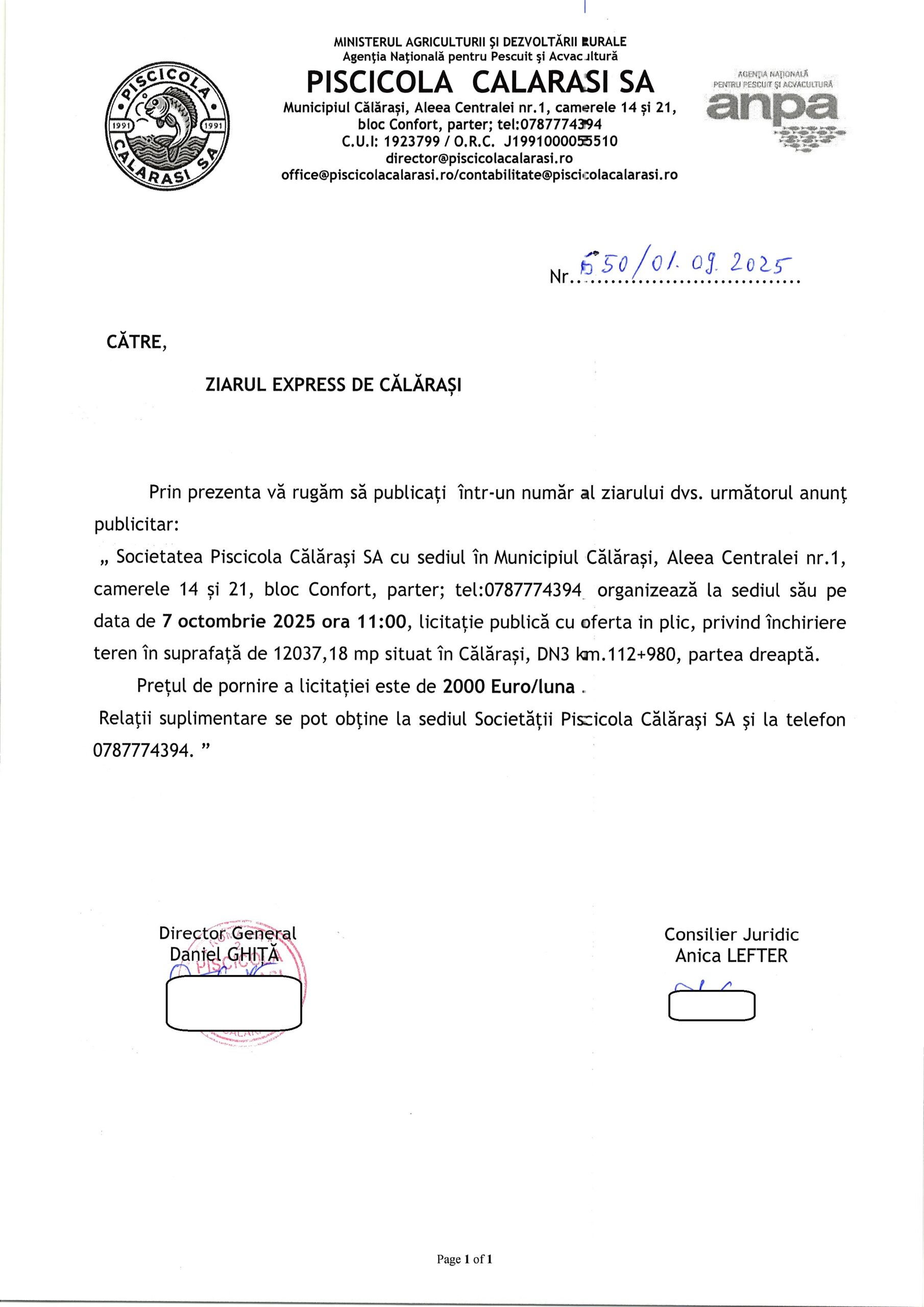 - Anunț Licitație 07.10.2025